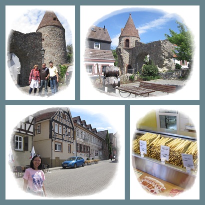 Pagi itu kami dijamu “Germany Breakfast” di rumah mereka. Sarapan apa nih ? hmm.. ternyata berupa aneka roti dengan keju dan selai. Menarik. Banyak varian olesan yang tidak ada di Indonesia. Setelah itu kami pun berjalan-jalan (betul-betul jalan kaki) untuk menikmati kota Darmstadt. Jalanannya sepi, rumahnya berderet rapi dengan eksterior yang unik. Kami jalan ke perbukitan, dimana ada winery (perkebunan anggur) dan juga gereja kecil dengan pemandangan ke arah kota. Di kota ini, masih ada juga beberapa benteng/tembok kuno yang bertahan dari sejak jaman perang dunia ke-2. Menarik.