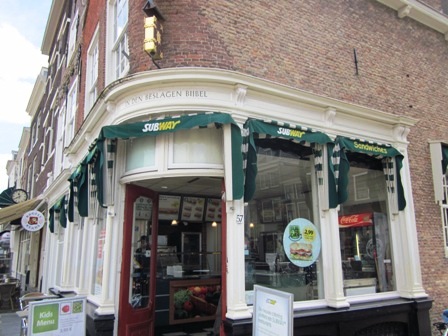 Ada juga sudut yang menarik. Di situ tertulis : IN DEN BESLAGEN BIJBEL. Dahulu ini adalah tempat percetakan alkitab. Sayang, saat ini sudah berubah fungsi menjadi tempat menjual makanan “Subway”.
