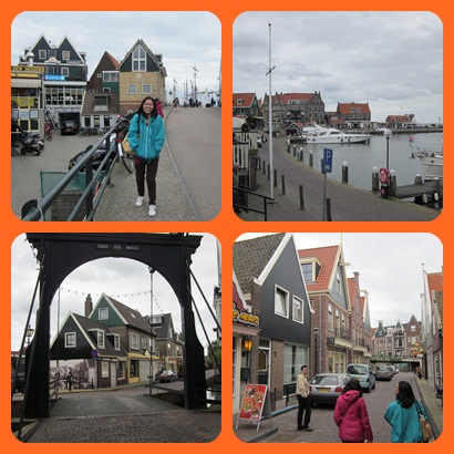 Dari Keukenhof, kami masih punya waktu. Hm.. kemana ya ? Ke Volendam saja deh. Kota pelabuhan yang jadi tempat terkenal untuk foto dengan pakaian khas nelayan Belanda itu, Sampai di sana, anginnya kencang sekali, jadi dingin. Ya.. habis kota pelabuhan, samping laut, jadi angin kencang seperti di pantai.