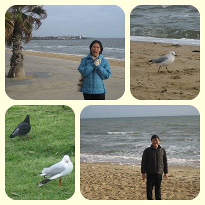 St. Kilda merupakan daerah pantai yang menarik. Kami naik tram ke sana dan menyusuri taman yang banyak pohon palem dan pohon besar. Perjalanan ke arah pantai sangat menyenangkan. Hanya saja saat itu angin bertiup sangat kencang. Maklum, mendekati pantai biasanya memang windy banget.