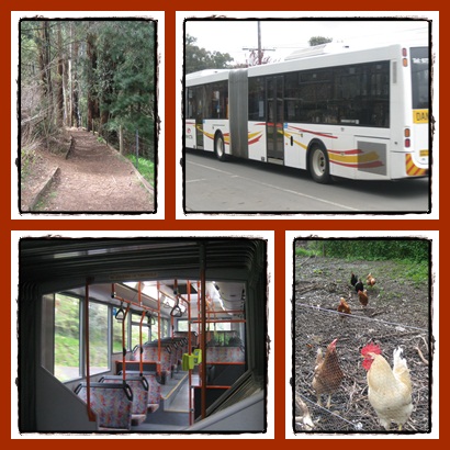 Dari halte bis Calista, kami naik bis gandeng ke arah Tesselaar. Jadi 2 bis digabung gitu, panjang deh. Ternyata hanya kami berdua penumpangnya. Supir bisnya, seorang senior citizen (lansia). Tau kami berdua turis, dia berbaik hati memperlambat laju kendaraannya sehingga kami bisa menikmati daerah Dandenong yang cantik ini. Di kiri kanan jalan, banyak perkebunan anggur serta pembibitan buah dan bunga.