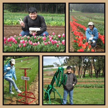 Kami sangat menikmati perjalanan di ladang tulip ini. Walau hawa dingin, tapi mata ini rasanya segar sekali. Tulip di mana2. Kayanya kalo datang di bulan Oktober bakal lebih bagus lagi deh. Udah pada mekar semua tulipnya. Sayang besok sudah hari terakhir kami di Melbourne.