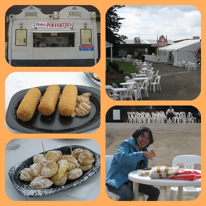 Ada panggung dimana bergaya Belanda dan orang yang menyanyi pun berpakaian Belanda. Ada juga yang jual makanan khas Belanda. Kami pun coba beli poffertjes dan kroket. Rasanya enak ! Tapi pas coba pumpkin soup… rasanya aneh di lidah kami. Lebih pasnya sih bisa dibilang ga enak, hehe..
