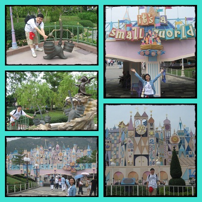 • Fantasy Land yang terdiri dari : Many Adventure of Winnie the Pooh (naik kereta gitu lihat2 patung2 dan cerita Winnie The Pooh), Mickey’s Phillarmagic dan Golden Mickey (keduanya berupa show dalam teater tertutup yang menarik sekali), keliling di dalam It’s A Small World (serupa dengan Istana Boneka Dufan) dan makan siang di Clopins Festival of Food. Ini serunya Disneyland Hong Kong, kapan lagi bisa lihat Mickey Mouse ngomong Mandarin, haha…