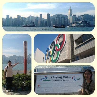 Kami suka sekali menikmati area Avenue of Stars. Biasanya kan kalo liat laut pasti di pantai. Tapi kalo di di sini liat laut dengan background gedung2 pencakar langit. Bisa dinikmati dari tengah kota lagi, keren banget ! Ga pake pasir beterbangan dan lautnya bersih. Tidak jauh dari Avenue of Stars ada juga Clock of Tower, Olympic Ring, dan replika obor Olimpiade Beijing.