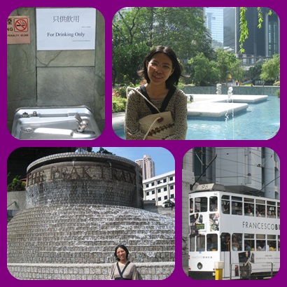 Dari Avenue of Stars, kami beranjak ke destinasi wisata terkenal lainnya di Hong Kong yaitu The Peak. Kami harus naik MTR ke Central. Petunjuk arah ke The Peak sangat jelas dan banyak. Sambil jalan, kami istirahat sejenak di Charter Garden sambil menikmati bekal dan minum dari tap water yang ada di taman itu. Kebetulan nih, isi lagi botol minum dulu aaah,,. Dari Charter Garden, jalanan agak menanjak dan akhirnya kami tiba di depan The Peak. Lokasinya ada di tengah2 dan diapit oleh 2 buah jalan.