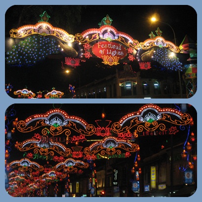 Setelah makan, kami jalan lagi ke daerah Little India. Pada saat kami datang ke sana, ternyata bertepatan dengan perayaan Festival Deepavali atau Festival of Lights, salah satu acara terpenting bagi umat Hindu. Karena hari sudah gelap, maka kawasan Little India penuh dengan lampu2 hias yang memenuhi jalanan sehingga terang benderang dan meriah. Di area ini tercium bau aroma dupa yang khas. Kami sih ga gitu suka aromanya, jadi buru2 cabut.