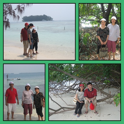 Destinasi kita ga jauh-jauh dari Jakarta, yaitu salah satu pulau di Kepulauan Seribu. Diana dan orangtuanya sudah beberapa kali ke pulau2 di Kepulauan Seribu. Sementara Keluarga Jeff belum pernah pergi ke pulau. Ke pantai pun sudah lama sekali tidak pergi.