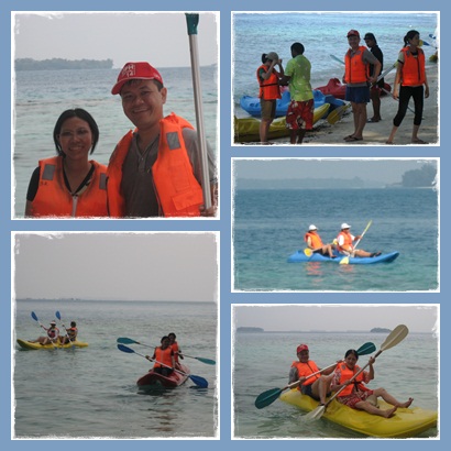 Di area kami ber-kano rupanya terdapat banyak sekali bulu babi. Wuiiih… kebayang kalo kano terbalik. Bisa nancep semua kita di atas bulu babi. Iiih… sereeeemmm… Mendayung kano gampang2 susah. Kalo mau belok ke kanan, maka kita harus mendayung di sebelah kiri. Begitu juga sebaliknya. Perlu kekompakan juga dari 2 orang pendayung kano supaya kano tidak oleng.