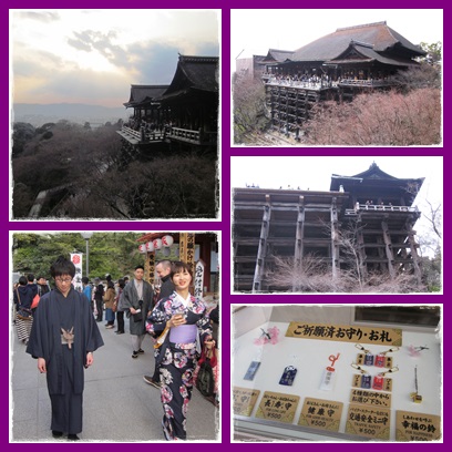Tiket masuknya 300 yen/org. Wuih, penuh sesak di dalam. Kami pun menerobos kerumunan orang-orang yang mau sembahyang. Ternyata renovasi yang dilakukan tidak mengganggu turis dalam menikmati temple tersebut. Temple kayu yang khas itu tetap dapat dinikmati dan kami pun dapat berpose seperti pose orang kebanyakan, yaitu dari seberang bukit dengan background temple kayu tersebut.