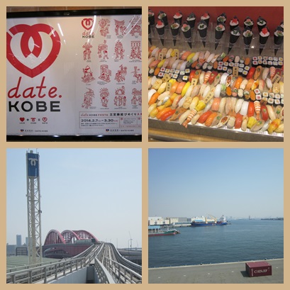 Awalnya ingin melihat area harbor yang terkenal di Kobe. Ternyata kami malah nyasar ke port terminal, yaitu ke tengah laut tempat kapal2 berada. Wah… ini sih bukan tempat wisata, walau begitu kami bisa memandang laut lepas dari sini. Ada juga jembatan merah yang unik di sini. Ini rupanya jalur menuju airport Kobe.