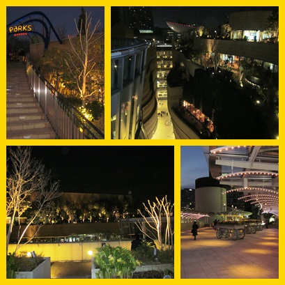 Oke, lanjut lagi mencari Namba park yang katanya berada di atas gedung dan menarik itu. Ternyata lokasi Namba park terletak di belakang Namba train station. Jadi kalo jalan dari arah Shinsaibashi lumayan jauuuuh… Hiks. Sampai Namba park sudah gelap, jadi kurang menarik ya. Tapi lumayanlah untuk bisa bersantai menikmati view kota Osaka dari taman bertingkat di atas gedung.