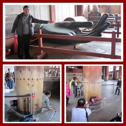 nara6Kami sempat melihat sekelompok turis asal China yang satu persatu mencoba menerobos. Mulai dari para wanita.. semua berhasil. Lalu mulailah para pria yang badannya lebih besar mulai mencoba. Yup.. satu lolos. Next.. pria yang lumayan gendut ukuran perutnya, hehe.. nah.. semua sudah mulai was was nih. Benar saja, pria ini nyangkut, hehe..