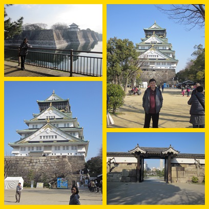 Sebetulnya saat kami datang juga belum musim sakura di Osaka. Menurut forecast, sakura akan mulai berbunga di Osaka tgl.27 Maret sedangkan hari ini masih tgl.23 Maret. Tetapi di Osaka Castle sudah ada beberapa pohon sakura yang mulai berbunga. Wah, penyambutan yang sangat manis bagi kami.