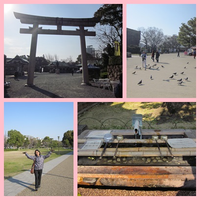 Kita juga bisa menikmati taman di dalam benteng kastil. Ada banyak burung dara dan ada juga mata air yang disediakan untuk membasuh tangan/kaki atau minum. Seperti yang selalu akan dijumpai di gerbang masuk kuil2 selama di Jepang.