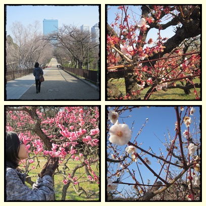 Di sini ada taman plum. Saat kami datangi, sudah banyak yang rontok dan gundul, karena musim bunga plum sudah berlalu. Tapi masih ada beberapa yang berbunga dan masih sangat cantik bagi kami. Selain itu, bunga plum ternyata sangat wangi ! Berbeda dengan cherry blossom (sakura) yang tidak terlalu wangi menurut kami.