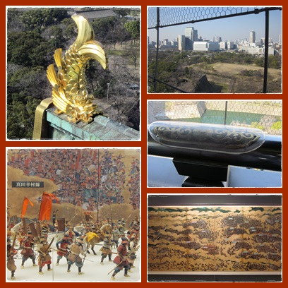 o5Untuk menikmati Osaka Castle, disarankan dimulai dari lantai yang paling atas, yaitu dek observasi. Dari situ terlihat pemandangan kota Osaka dari segala penjuru mata angin. Kita juga bisa melihat beberapa bagian kastil yang terbuat dari emas murni. Ada bagian emas di railing pagar yang ditutupi plastik akrilik sehingga tidak rusak atau menghitam atau hilang diambil orang, hehe..