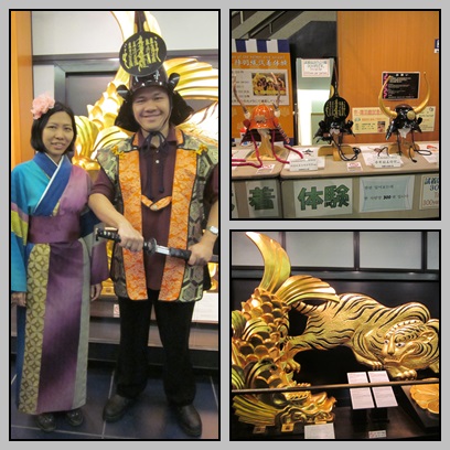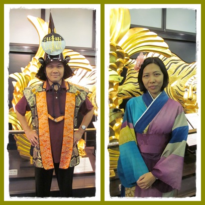 Jangan lewatkan kesempatan menjadi samurai ketika berkunjung ke sini. Hanya dengan biaya 300 yen per orang, kita bisa menggunakan kostum khas Jepang tersebut dan mengambil foto dengan kamera kita sendiri sepuasnya. Ada beberapa pilihan topi untuk pria dan beberapa pilihan kimono untuk wanita. Ada juga sih wanita yang maunya pakai topi samurai itu, ga papa juga.. kan ceritanya pejuang wanita juga ada 🙂