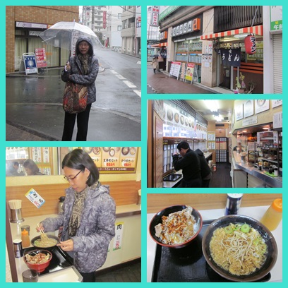 Sambil jalan kami cari2 sarapan. Aaah.. coba itu aja, kedai ramen yang ga jauh dari hotel. Kami selalu melewati kedai ini saat dari station Ikebukuro mau ke hotel atau sebaliknya. Yang unik adalah orang2 yang makan di kedai ini harus makan sambil berdiri karena tidak disediakan tempat duduk, hanya meja saja dan selalu penuh loh.