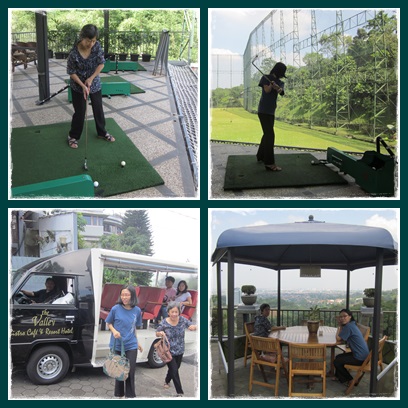 Dengan voucher dari hotel, kami diberikan 100 bola untuk dibuang ke lapangan hijau di depan kami. Stik golf juga dipinjamkan. Plus training singkat tentang bagaimana memegang stik golf dan bagaimana cara memukul bola golf.
