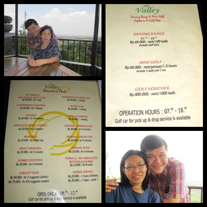 Setelah selesai bersantap, kami pun lanjut ke tujuan, yaitu The Valley. Tiba di hotel sekitar pukul 12 siang, check-in, dan petugas pun memberikan voucher untuk breakfast besok pagi, voucher 50 ribu bermain di adventure park dan voucher 100 bola golf untuk main di driving range. Sayang, kamarnya belum siap-masih dibersihkan, jadi sambil menunggu kami putuskan untuk menggunakan dahulu voucher bermainnya.