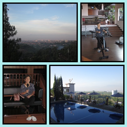 Pagi hari, matahari bersinar walau agak terhalang awan. Suasana cukup cerah, jadi kami putuskan untuk segera menuju fitness centre. Menyenangkan sekali berolahraga pagi hari sambil melihat pemandangan yang asri di depan mata.