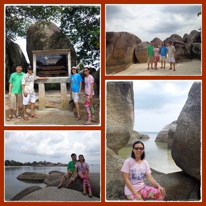 Sayang nih, papan Laskar Pelangi nya sudah ada yang pecah/rusak. Tapi pantainya memang unik karena banyak batu2 besar yang tersebar baik di pantai maupun di laut. Ga ada pantai yang punya batu2an besar seperti ini.