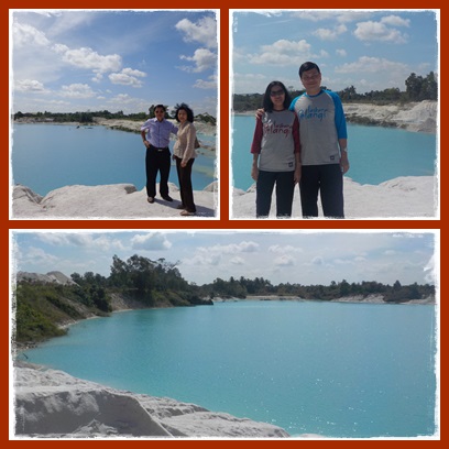 Tempat terakhir yang kami kunjungi sebelum ke bandara adalah Danau Biru Kaolin. Danau ini masih aktif ditambang, bekas galian tambang menyisakan danau dengan air warna biru yang mempesona.