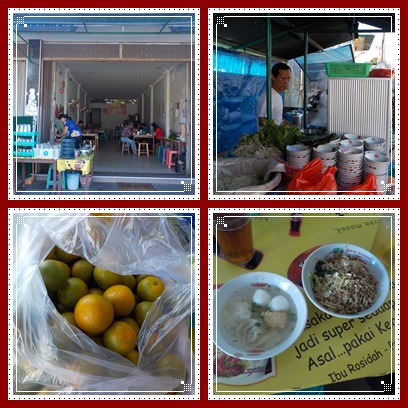 Papa dan mama tidak ikut, jadi kami bungkuskan saja buat nanti makan siang mereka. Jika dibawa pulang, maka yamien akan dibungkus dengan daun simpor dan baso seafoodnya langsung dicampur di situ, tanpa kuah. Di sini juga jual air jeruk biasa (jeruknya lebih besar) dan air jeruk kunci (jeruknya kecil2). Harganya 5 ribu segelas. Kalo teh gratis, semua tempat makan di Belitung sepertinya begitu, mirip di Bandung kan.