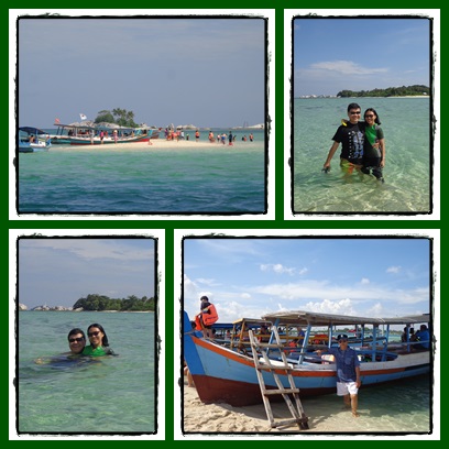 1. Pulau Pasir. Berupa gundukan pasir putih di tengah laut. Jika air laut pasang, maka pulau ini akan ‘tenggelam’. Disini bisa foto2 dan berenang sekitar pulau. Airnya jernih. Tersedia 3 bintang laut yang diambil dari dasar laut dalam dan diletakkan di pantai ini. Jadilah para bintang laut ini ‘korban’ objek foto para wisatawan. Itu beneran bintang laut yang masih hidup walaupun terlihat tidak bereaksi. Kami sih ga tega ambilnya, jadi foto underwater saja ya. Kasian bintang lautnya kalo kelamaan ada di darat, kan habitatnya di dasar laut sebetulnya.