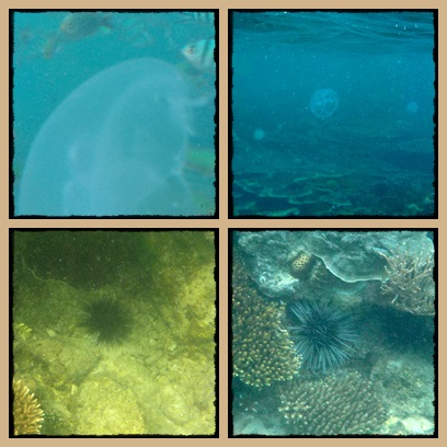 Jenis ikan memang tidak sebanyak di Maldives (lihat fotonya di Maldives trip) dan jenisnya berbeda. Tapi di sini lah kami melihat ubur2 atau jelly fish hidup untuk yang pertama kalinya. Kereeeen ! Cuma susah difoto nih, karena kan transparan. Lagipula ubur2 ini jika dipegang dapat menyebabkan kita gatal2, jadi harus jaga jarak yah.