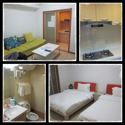 Selama 2 malam, kami akan menginap di “Mark & Henry Apartment”. Booking nya dari booking.com, reviewnya bagus, lokasi strategis (bisa jalan kaki ke area City Wall-Bell Tower) dan harganya murah. Untuk kamar kami yang 1 bedroom plus dapur plus ruang duduk2/TV harganya RMB 168 per malam. Sebelum kami ke China pun, kami beberapa kali sudah berkomunikasi dengan Mr. Mark, pemiliknya, melalui whatsapp dan email. Sangat responsive dan sangat helpful. Dia memberikan peta wisata Xian, keterangan lengkap mengenai transportasinya, dan memberikan saran untuk kegiatan wisata kami di Xian. Very good service !