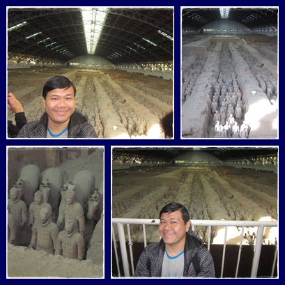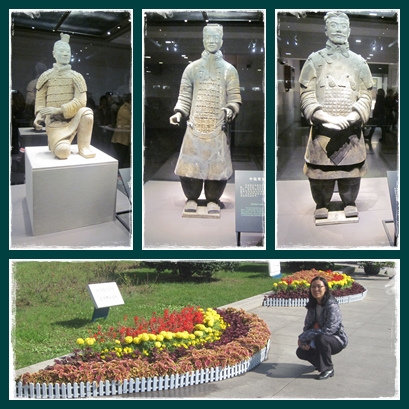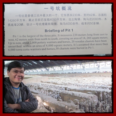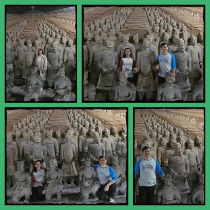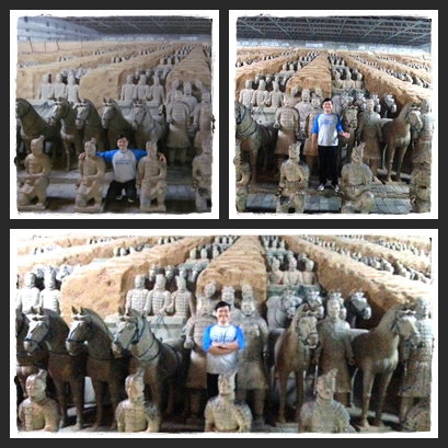 Namun, di pit 2 dan 3, ada studio foto di mana kami bisa berfoto dengan replika patung2 Terracota Warrior yang utuh dan seukuran dengan tubuh kami. Benar-benar patung 3 dimensi, bukan gambar poster 2 dimensi. Tarifnya RMB 10 per orang, bukan per pose, menggunakan kamera sendiri. Murah kan ?! Jadi silakan potret sampai puas, haha.. Petugasnya juga siap membantu untuk memotret kok.