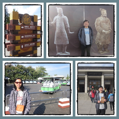Pagi hari ini, kami mau pergi ke salah satu tempat wisata fenomenal yang merupakan impian Jeff sejak lama, yaitu Emperor Qinshihuang’s Mausoleum Site Museum atau orang lebih mengenalnya dengan nama Terracota Warrior Museum. Letaknya lumayan jauh dari pusat kota Xian. Ada 2 cara untuk ke sana. Cara mudah yaitu rental car dengan biaya RMB 500 per mobil. Cara seru yaitu dengan naik bis dengan biaya RMB 7 per orang. What ? Segitu murahnya ? Ga usah ditanya, pasti kami pilih yang cara seru dong, karena murah, hehe.. Mark pun merekomendasikan kami naik bis ini karena jarak tempuhnya menurut dia sama saja. Mantap !