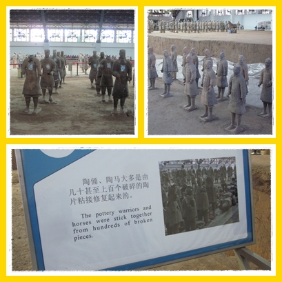 Di bagian belakang pit 1, kami bisa melihat beberapa arkeolog sedang bekerja menyatukan kepingan demi kepingan yang ditemukan agar bisa disatukan kembali menjadi Terracota Warrior yang utuh. Menyatukan puzzle 2 dimensi saja sudah sulit, apalagi ini berbentuk 3 dimensi. Lalu kepingannya itu kecil-kecil loh, ga ada contohnya lagi. Karena tiap patung itu wajahnya ga ada yang sama loh. Bajunya aja bisa beda-beda tergantung pangkatnya. Wah, bisa pusing tujuh keliling nih nyusunnya.