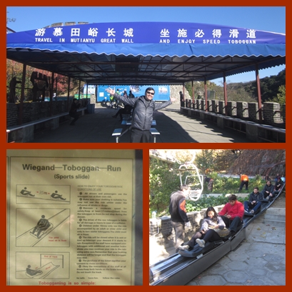 wall1Akhirnya demi idealisme kami, terpaksa bayar mahal deh. Naik pake cable car 1 way ke tower 14, jalan ke kiri sedikit lalu diteruskan ke arah kanan sampai mencapai tower 6, dan turun pake toboggan. Musti bayar RMB 180 deh, tapi demi pengalaman yang mengesankan ga papa lah.