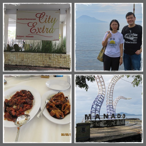 Nah, sekarang waktunya cobain makan seafood nih. Berhubung agak serem dengan kedai2 ga jelas harganya itu, akhirnya kami memilih makan di restoran saja. Walau relatif lebih mahal tapi harga sudah pasti dan tempatnya juga lebih bersih. Kami pun dibawa ke Restoran City Extra yang besar dan kelihatannya cukup populer di tepian pantai Malalayang ini.