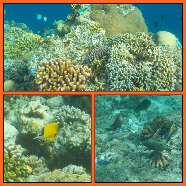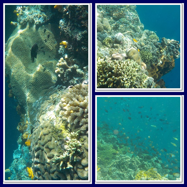 Di titik ini ada area “wall”, dimana kedalaman laut dari yang dangkal di pinggir pantai tiba2 berubah menjadi dalam. Persis kondisi yang kami temui di Maldives (baca trip Maldives). Jadi paling baik memang snorkeling menyusuri “wall” ini.