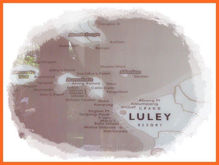 Sekilas Info : Taman Laut Bunaken merupakan area perairan yang luas, meliputi 5 pulau yaitu pulau Bunaken (yg terbesar), pulau Siladen, pulau Manado Tua, pulau Mantehage dan pulau Naen. Di sekitar pulau2 itu terdapat titik-titik selam yang diberi nama masing-masing. Bisa lihat gambar di bawah ini. Nah, jadi jangan sembarangan kalo mau snorkeling atau diving ya. Mesti tau kalian dibawa ke titik yang mana. Walaupun di lautan ga ada namanya, tapi bisa dikira-kira lah. Jangan percaya kalo cuma dibilang “the best spot“, karena masing-masing spot ada plus minusnya.