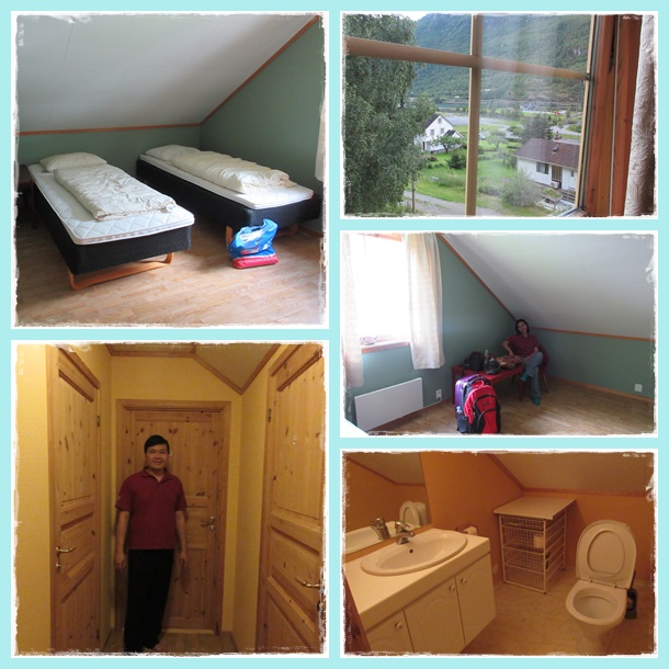 Hujan sudah reda, saatnya menuju ke tempat kami menginap. Untuk menginap di Flam, jumlah hotel/hostel cukup terbatas, karena memang ini area pedesaan yang dikhususkan untuk turis. Waktu mencari di booking.com, kami hanya melihat mana yang paling murah dan referensinya oke. Ada 2 pilihan, Flam camping & youth hostel serta Brekke Gard hostel. Semua modelnya hostel yang sharing bathroom, harganya mirip. Kami waktu itu putuskan Brekke Gard saja. Tempat tidur kami pilih yang sekamar berdua.