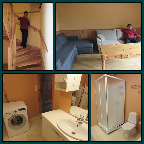 “Ini rumahnya”, kata sang petugas. Wow, dekat sekali dengan station kereta dan pusat keramaian Flam. Asiiik.. Rumahnya… bagus sekali, seperti villa, tidak seperti hostel ! Letaknya agak di dataran tinggi, jadi view nya bagus !
