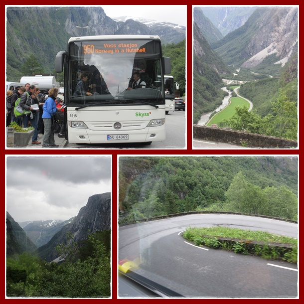 Ingat kelok 44 di Maninjau, Sumatera ? Bisa baca soal ini di trip kami  saat ke Bukittinggi. Nah, mirip deh. Lumayan seru nih, apalagi ukuran busnya cukup besar dan lebar. Perjalanan menurun ini dahulu merupakan satu2nya jalur menuju Voss. Sekarang sudah ada jalan lain yang tidak terjal seperti ini. Jadi bus2 lain umumnya melewati jalan lain tersebut. Hanya bus turis ini yang lewat kelokan ini karena pemandanganya memang indah dan pengalamannya seru. Supir bus nya juga sudah terlatih. Jagoan !