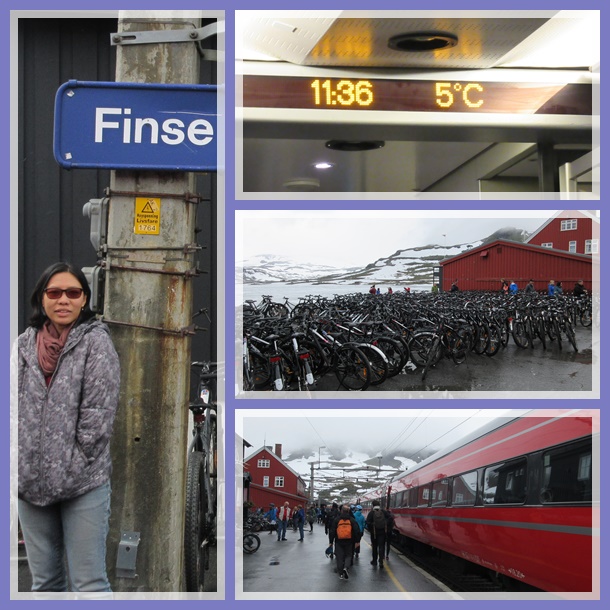 Nama station nya juga unik, Finse 1222. Rupanya Finse terletak 1.222 meter di atas permukaan laut, ini merupakan titik tertinggi dari seluruh perjalanan NiN. Mau tau berapa dinginnya ? 5 derajat Celcius. Jangan lupa, ini musim panas dan kami datang pada jam 11.30 siang !! Kebayang ga kalo musim dingin trus malem2 kaya apa ? Brrr…