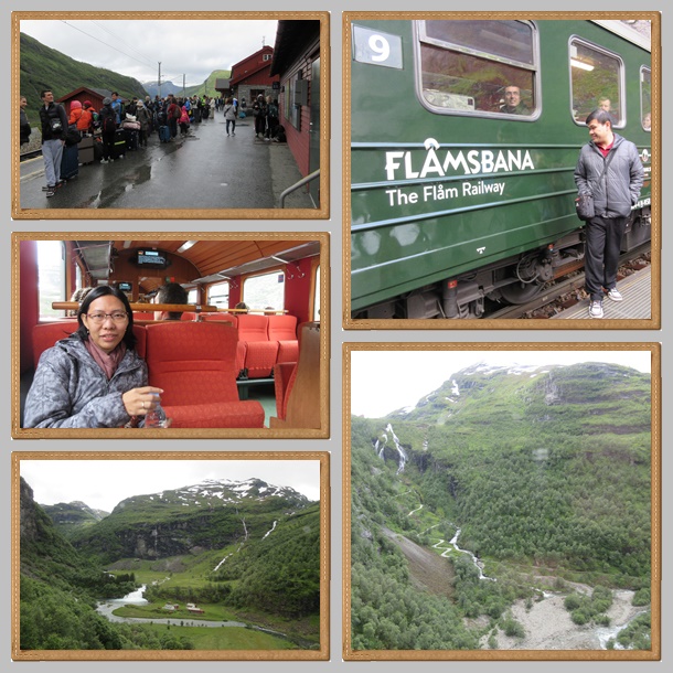 Perjalanan selanjutnya langsung non stop menuju Flam. Pemandangan yang indah dan hijau menemani perjalanan kami ini. Namun secara umum, kami kurang menikmati perjalanan kereta ini karena terlalu touristic dan sangat padat dengan rombongan tour. Maklum ini summer sih, apa boleh buat.