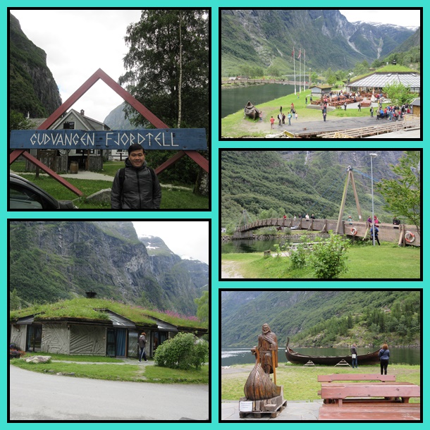 Akhirnya setelah 2 jam lebih perjalanan by boat, kami pun tiba di Gudvangen. Area pelabuhan ini ramai dengan turis. rata2 menikmati makan siang di satu2nya restoran besar di situ. Bangunan2 di sini cukup unik, termasuk restorannya, karena atapnya ditumbuhi rumput.