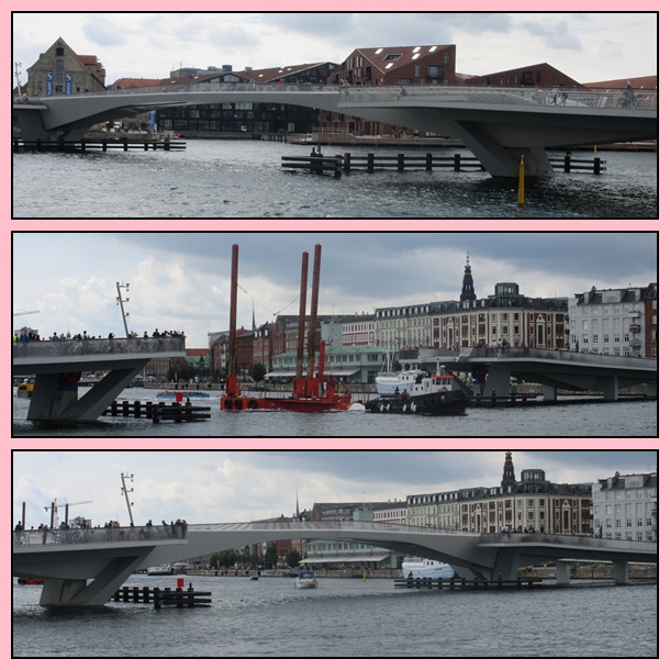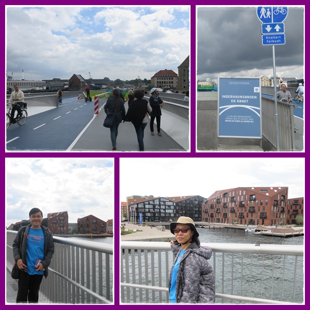 Dari sini kami mau melewati jembatan yang baru saja “nyambung” kemarin sore untuk menuju ke Papirøen, Street Food Market. Menurut tour guide kemarin, makanan di tempat ini banyak sekali dan sangat direkomendasikan. Saat mendekati jembatan, kami baru sadar bahwa jembatan ini hanya untuk orang jalan dan sepeda saja. Jadi mobil tidak bisa lewat sini.