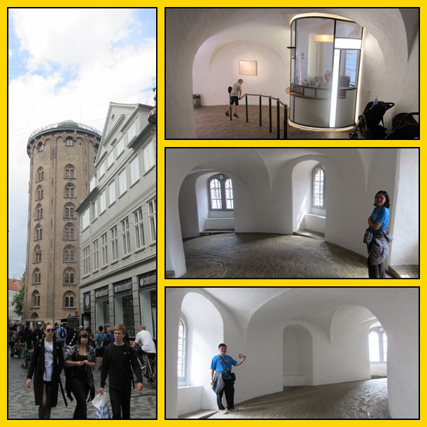 Untuk masuk ke Round Tower kami harus membayar tiket DKK.25 per orang. Tinggi tower ini 34,8 meter. Tujuan awal pembangunannya adalah untuk observasi astronomi. Yang menarik adalah jalan batu menuju ke atas bukan dengan tangga tapi dengan jalanan yang memutar naik. Diana jadi ingat cerita2 dongeng dimana sang putri biasanya naik ke atas menara terlarang, ya.. kayak gini deh, hehe.. Yang ini jalan berputarnya ada di dalam gedung, jadi ga seram. Kalo yang spiral tower kan jalannya di luar gedung, lebih seram sih.