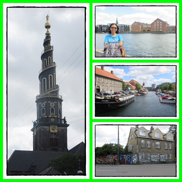 Dari situ kami sempat jalan2 di area Christianshavn, area sekitar Christiania. Menarik juga. Ada Our Saviour’s Church. Gereja yang unik karena tower nya berbentuk spiral. Kita bisa naik sampai ke puncak, melingkari bagian luarnya. Tentu ini bukan untuk yang takut ketinggian yah. Tarifnya DKK.45 untuk naik ke tower ini. Selain itu, area ini pun sangat menarik dengan perumahan dan kanal2 beserta boatnya.