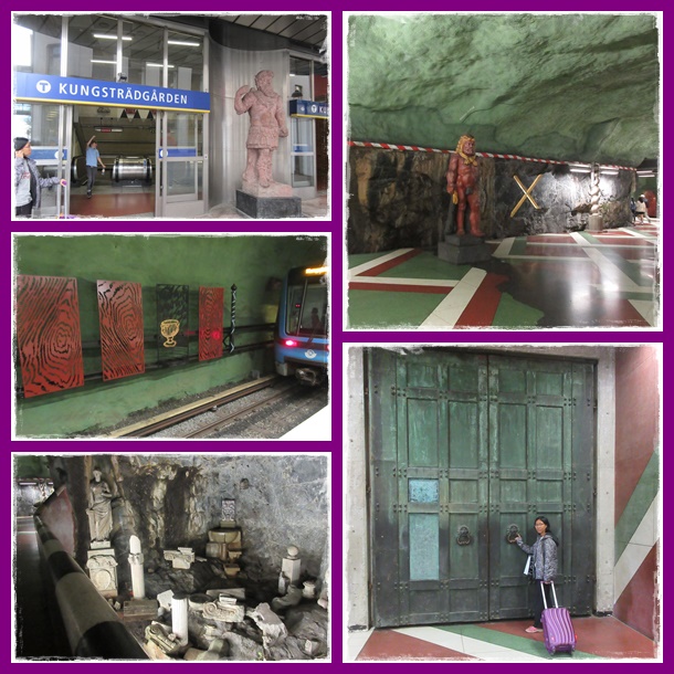 Ini menjadi salah satu atraksi wisata bagi kami di Stockholm. Sangat disarankan, selain gratis (cuman modal tiket kereta), bisa dinikmati sambil lewat, juga aman saat cuaca hujan, hehe.. Besok2, kami masih akan mengunjungi beberapa stasiun kereta lain yang juga artistik. Sabar ya, sekarang kami mau pulang dulu. Cape nih geret2 koper terus.