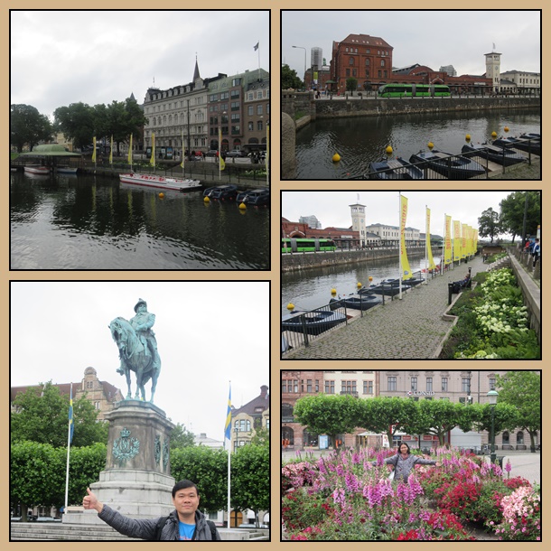 Dari station kami berjalan ke Great Square yang letaknya tidak jauh dari station. Kami melintasi jembatan dan pemandangan perairan di tengah kota itu selalu menyegarkan mata. Di Great Square ada patung King Karl X Gustav dan banyak bunga2 yang semarak juga ditata di situ, senang deh lihatnya.